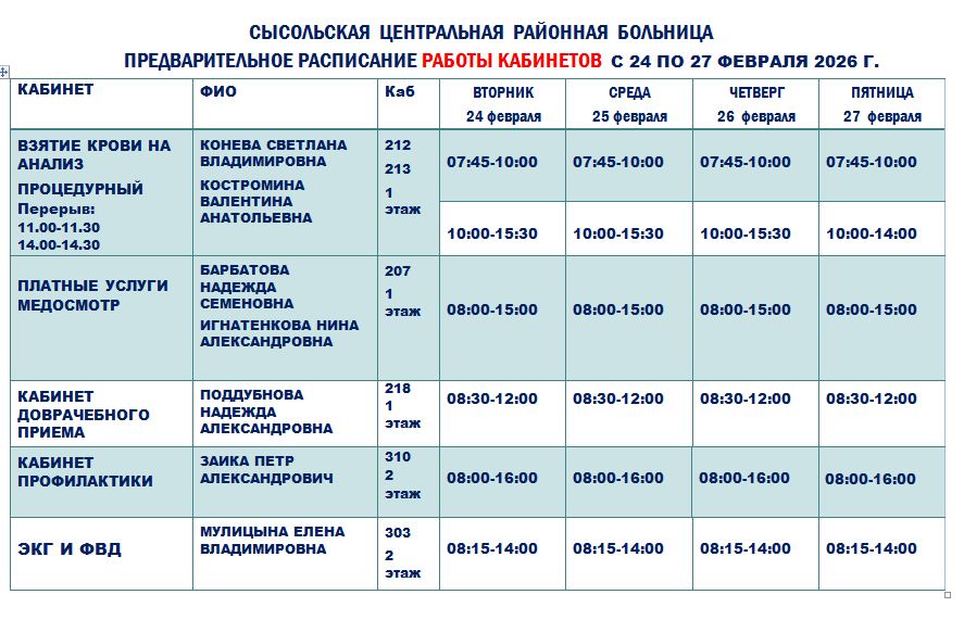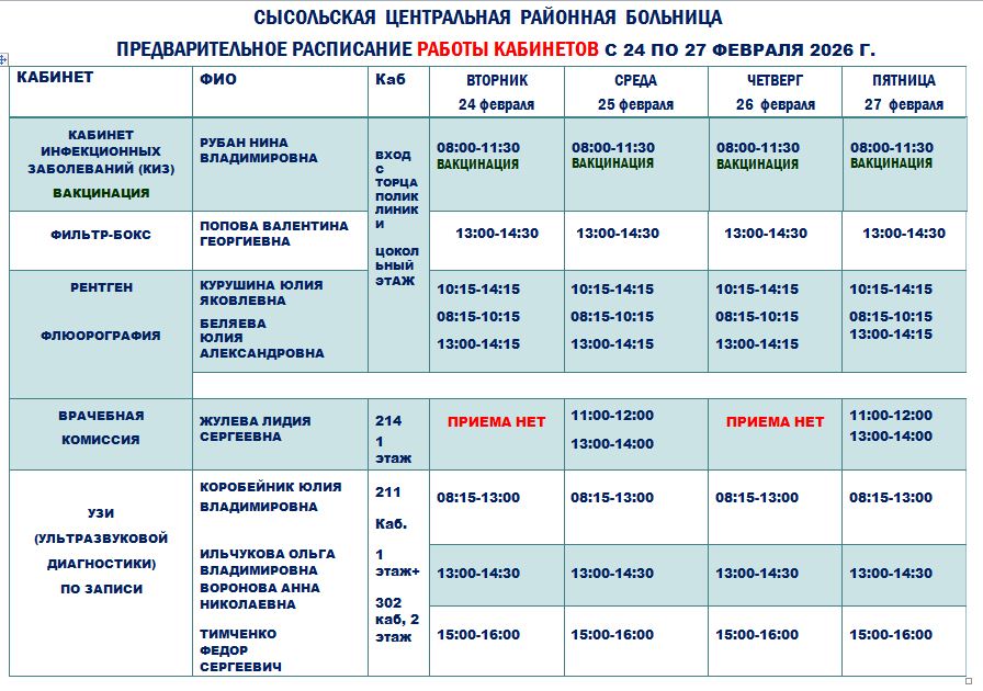 25 февраля не будет приема у Жулевой Л.С. в 216 и 214 кабинетах.